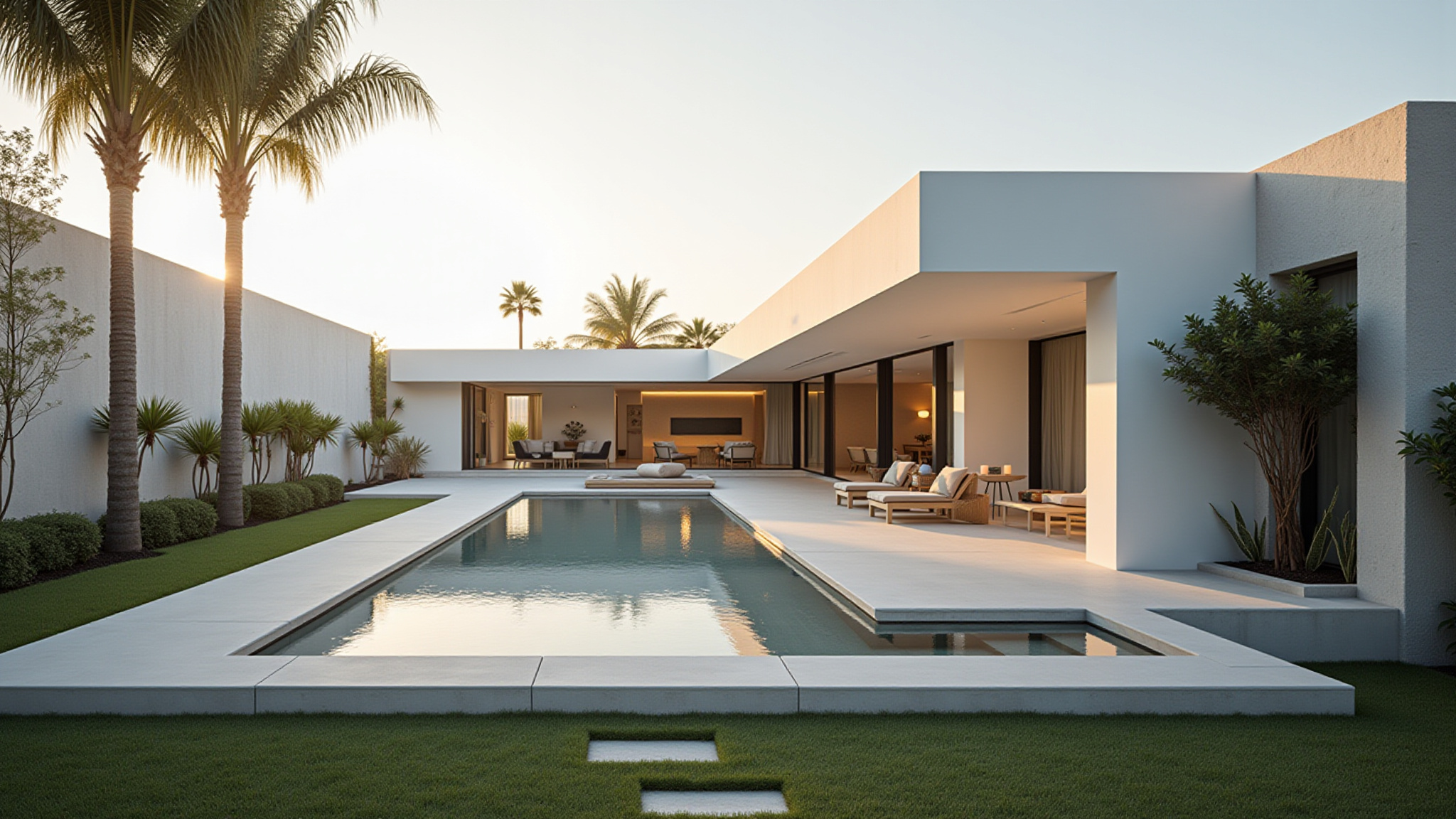 El proyecto incorpora doble altura en la zona de día, patio interior de luz, piscina longitudinal, y un paisajismo integral diseñado para convivir con la arquitectura.